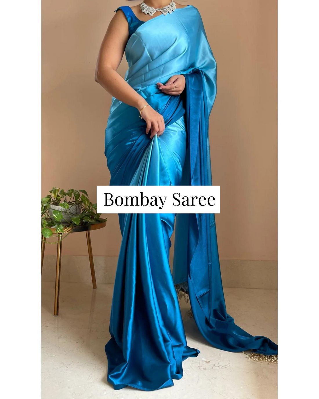 Ocean Ombre Satin Saree with Handmade Tassels on Pallu