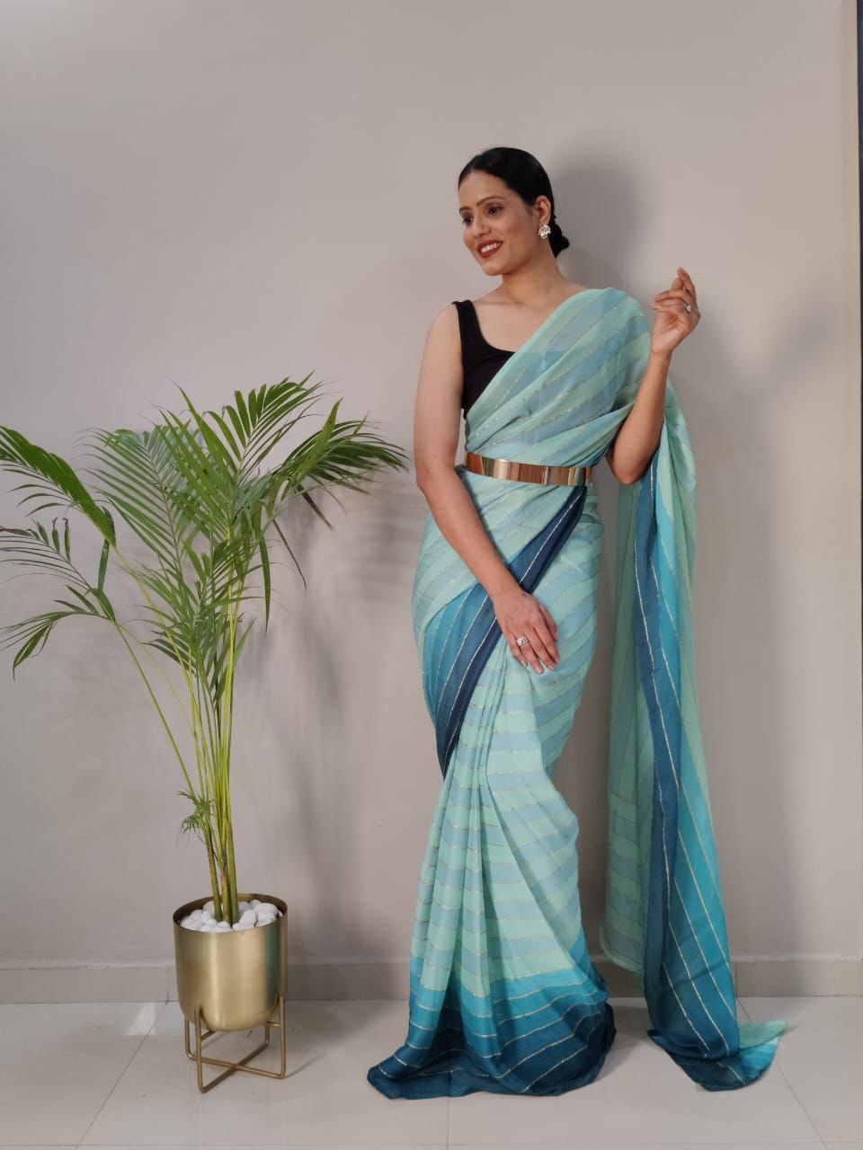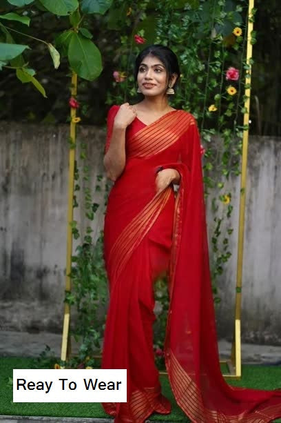 1-MIN READY TO WEAR SAREE IN PREMIUM CHIFFON SILK WITH ZARI PATTA