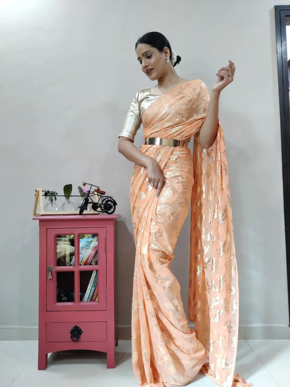 1-MIN READY TO WEAR SAREE IN PREMIUM CHIFFON SILK WITH BLOUSE