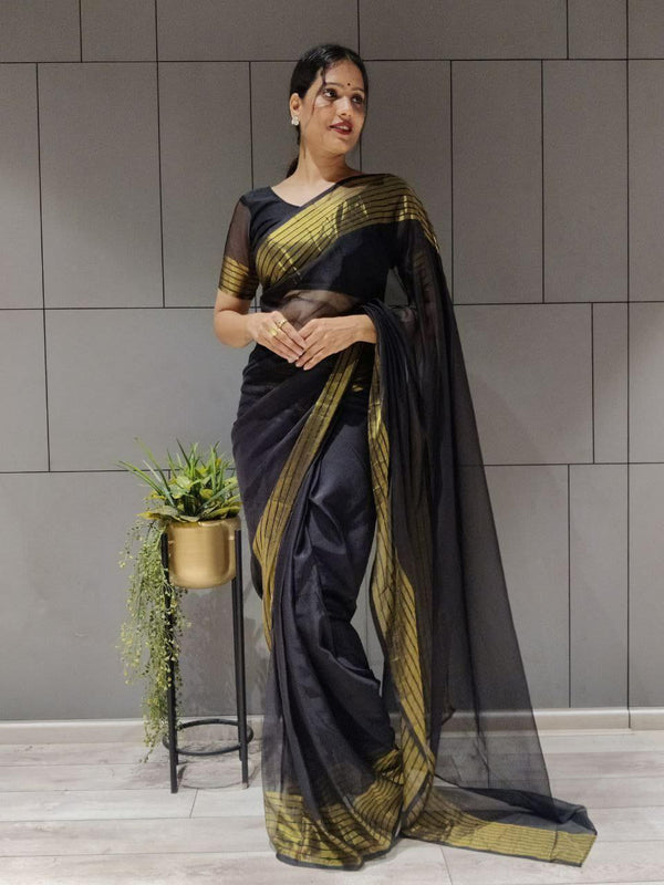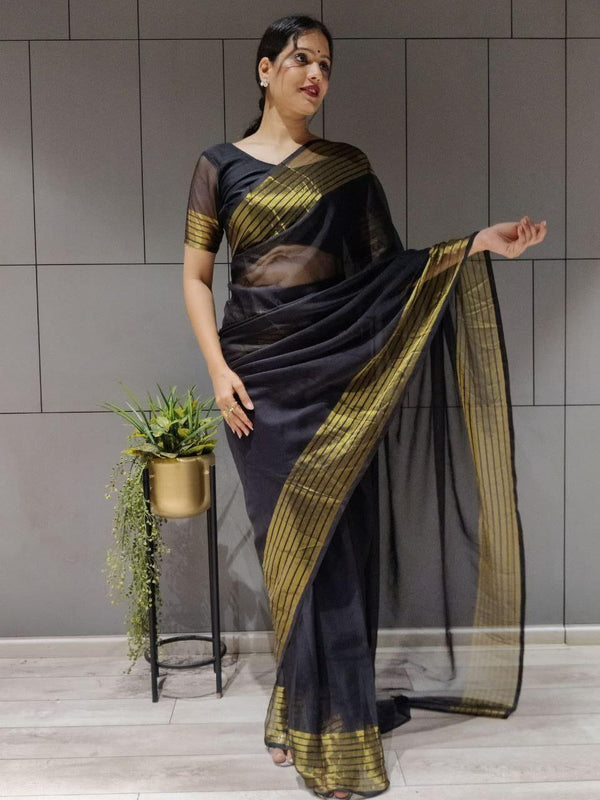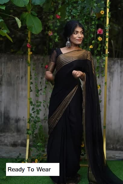 1-MIN NEW READY TO WEAR SAREE IN PREMIUM CHIFFON SILK WITH ZARI PATTA