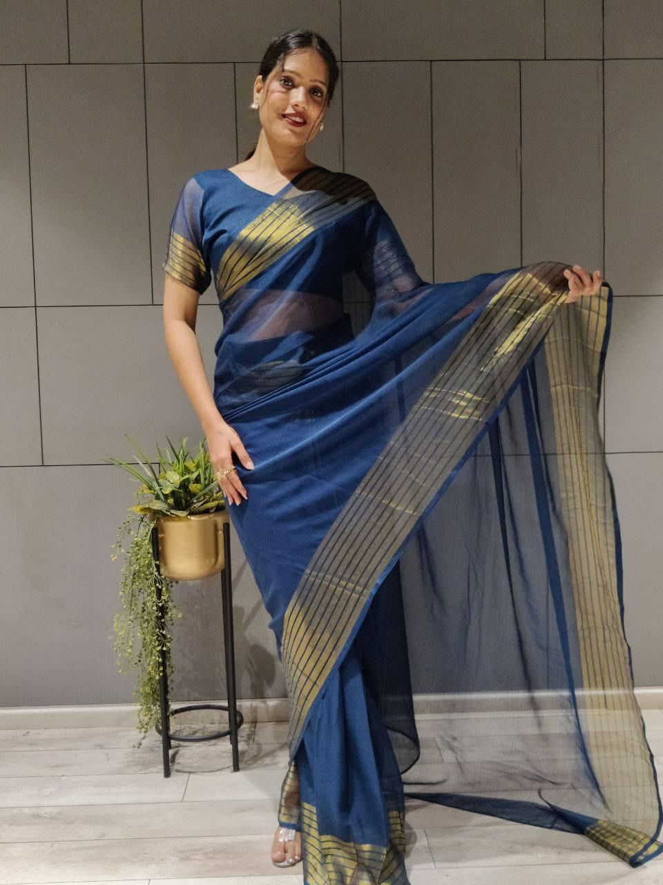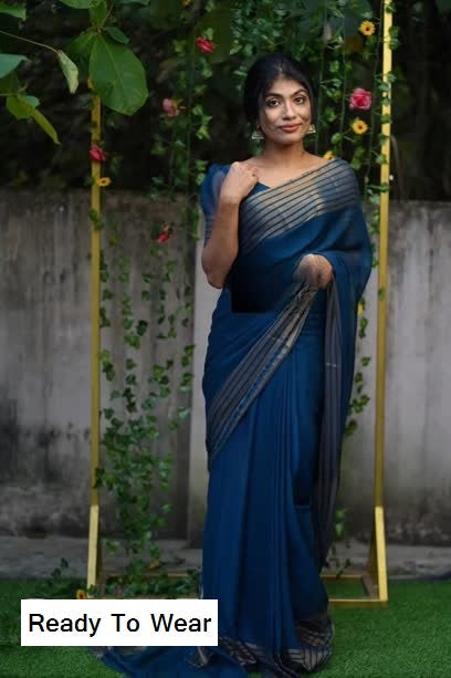 1-MIN NEW READY TO WEAR SAREE IN PREMIUM CHIFFON SILK WITH ZARI PATTA