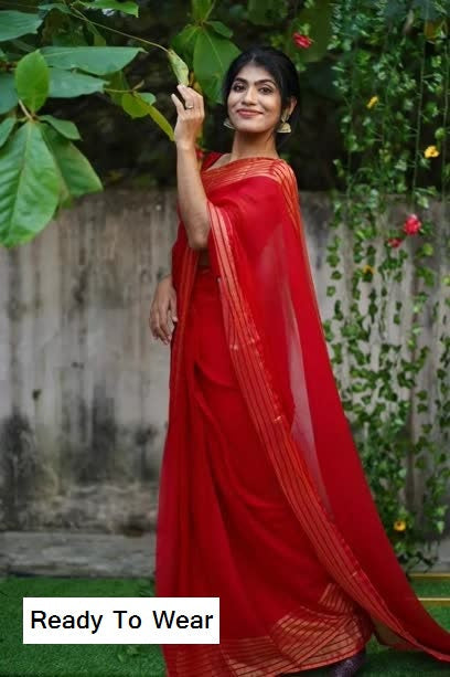 1-MIN NEW READY TO WEAR SAREE IN PREMIUM CHIFFON SILK WITH ZARI PATTA