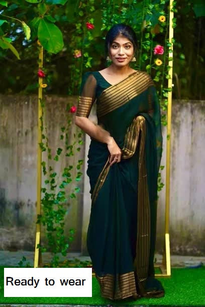 1-MIN NEW READY TO WEAR SAREE IN PREMIUM CHIFFON SILK WITH ZARI PATTA