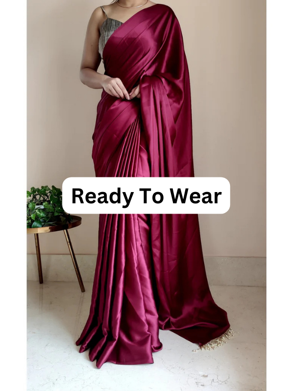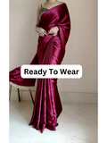 1-MIN READY TO WEAR SAREE IN CHERRY WINE PREMIUM SATIN SILK