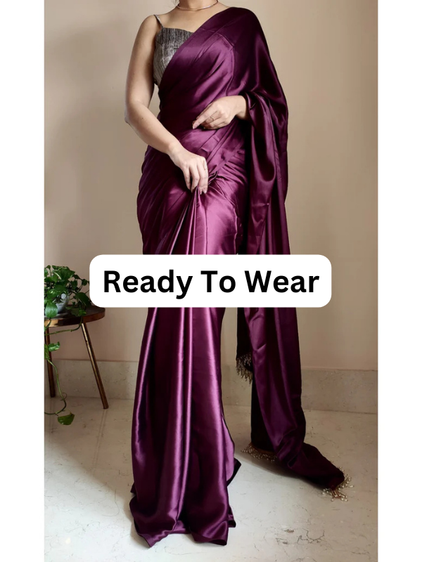 1-MIN READY TO WEAR SAREE IN DARK WINE PREMIUM SATIN SILK