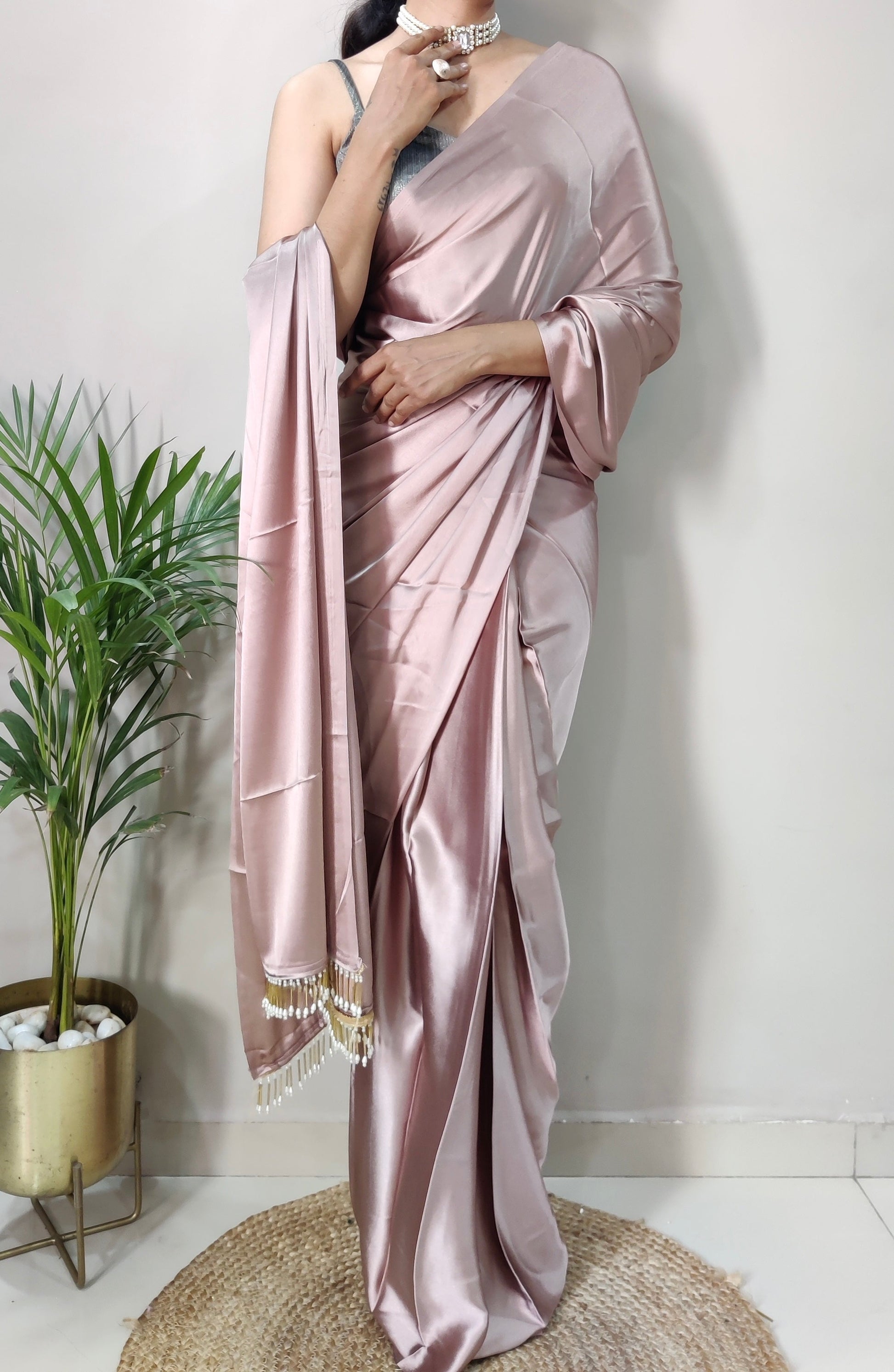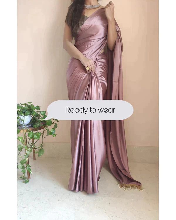 1-MIN READY TO WEAR SAREE IN ROSE GOLD PREMIUM SATIN SILK