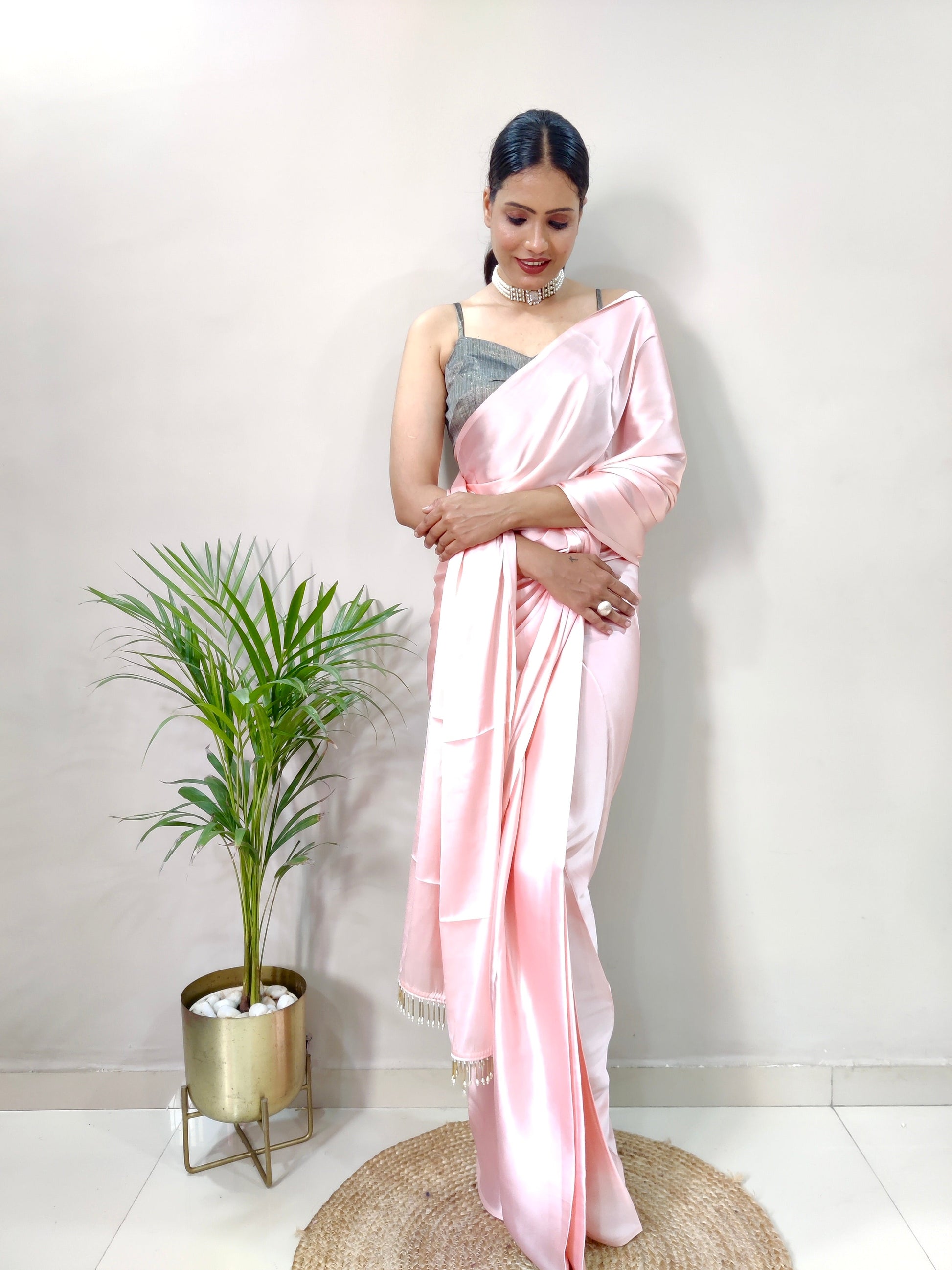 1-MIN READY TO WEAR SAREE IN OLD ROSE PREMIUM SATIN SILK