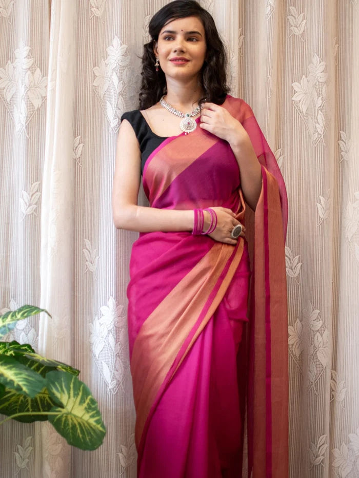 1-MIN READY TO WEAR SAREE IN PREMIUM CHIFFON SILK WITH ZARI PATTA