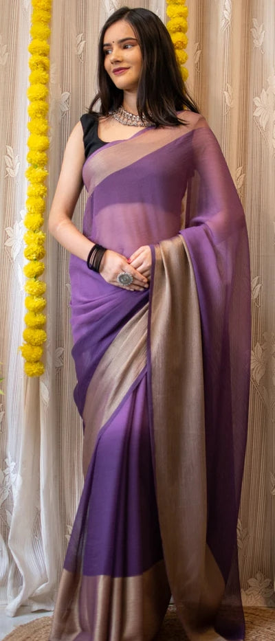 1-MIN READY TO WEAR SAREE IN PREMIUM CHIFFON SILK WITH ZARI PATTA