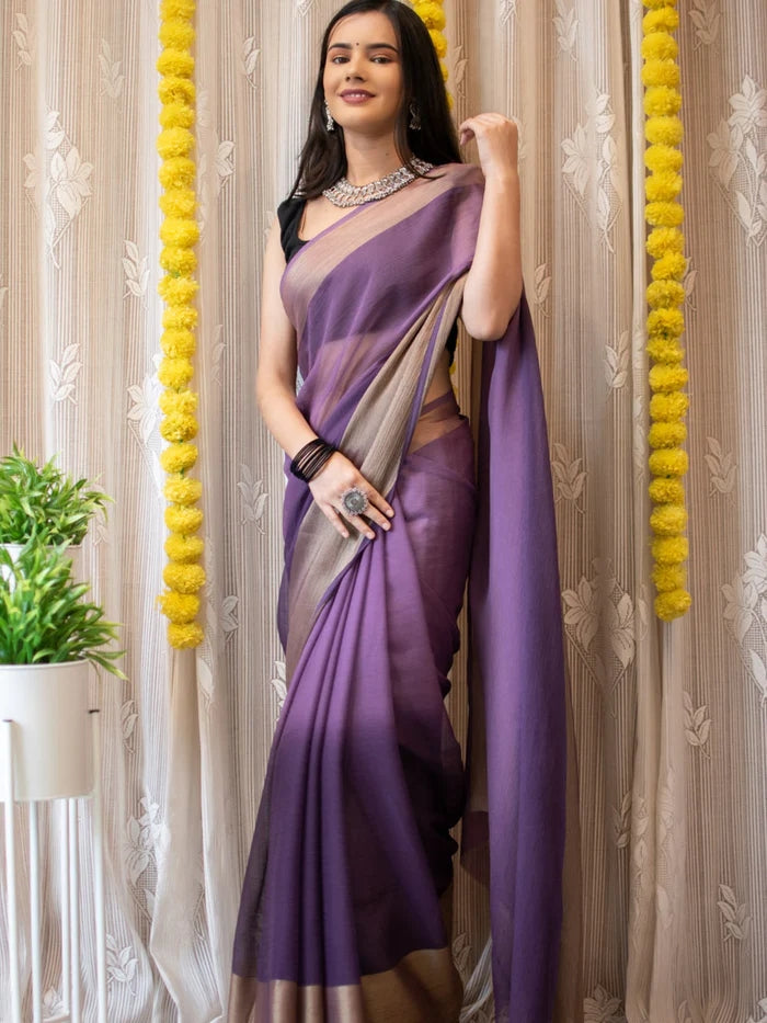 Saree : Ready to wear saree with premium chiffon silk (dark purple)