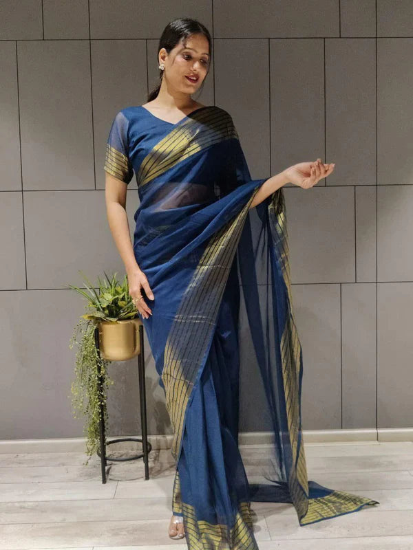 1-Min Ready to Wear saree in PREMIUM CHIFFON WITH ZARI PATTA