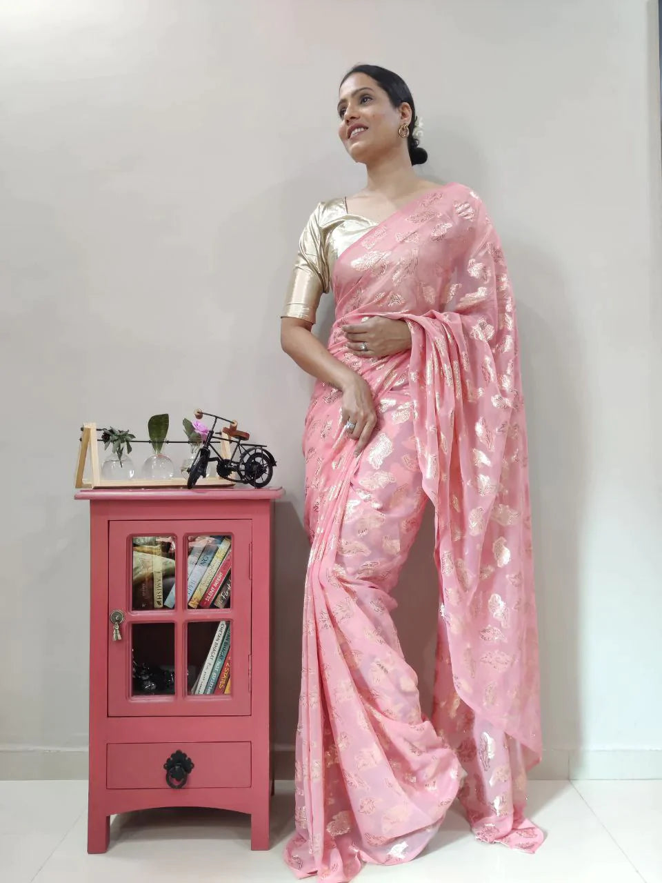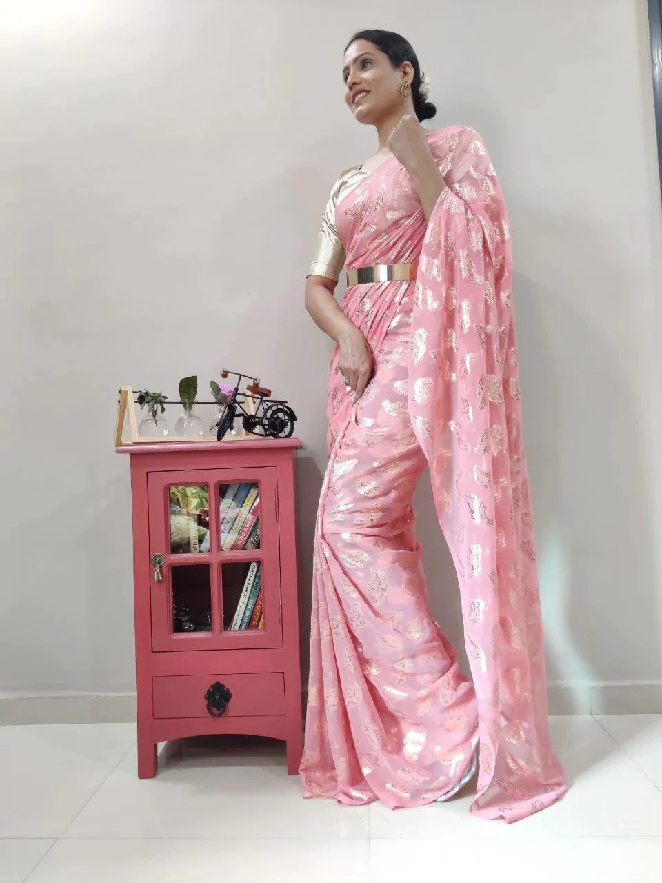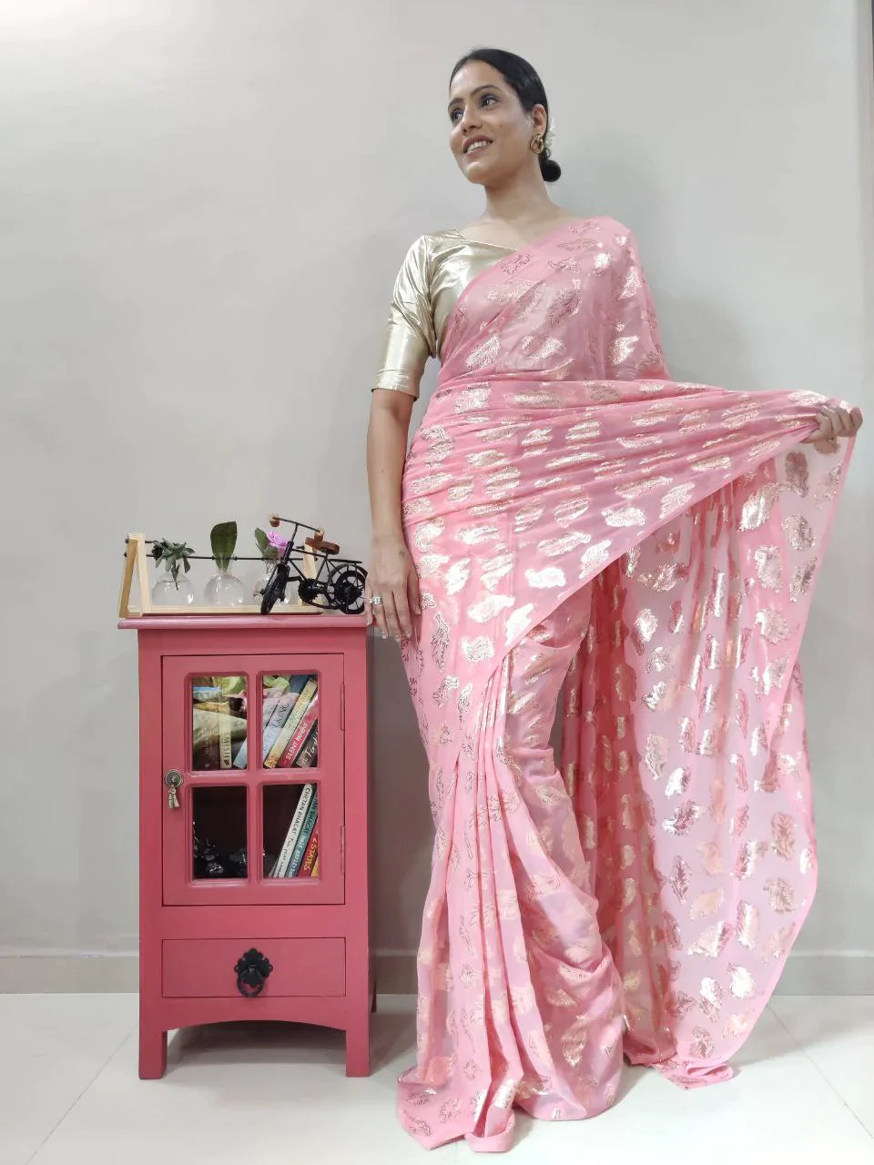 1-MIN READY TO WEAR SAREE IN PURE VISCOS ZARI WEAVING