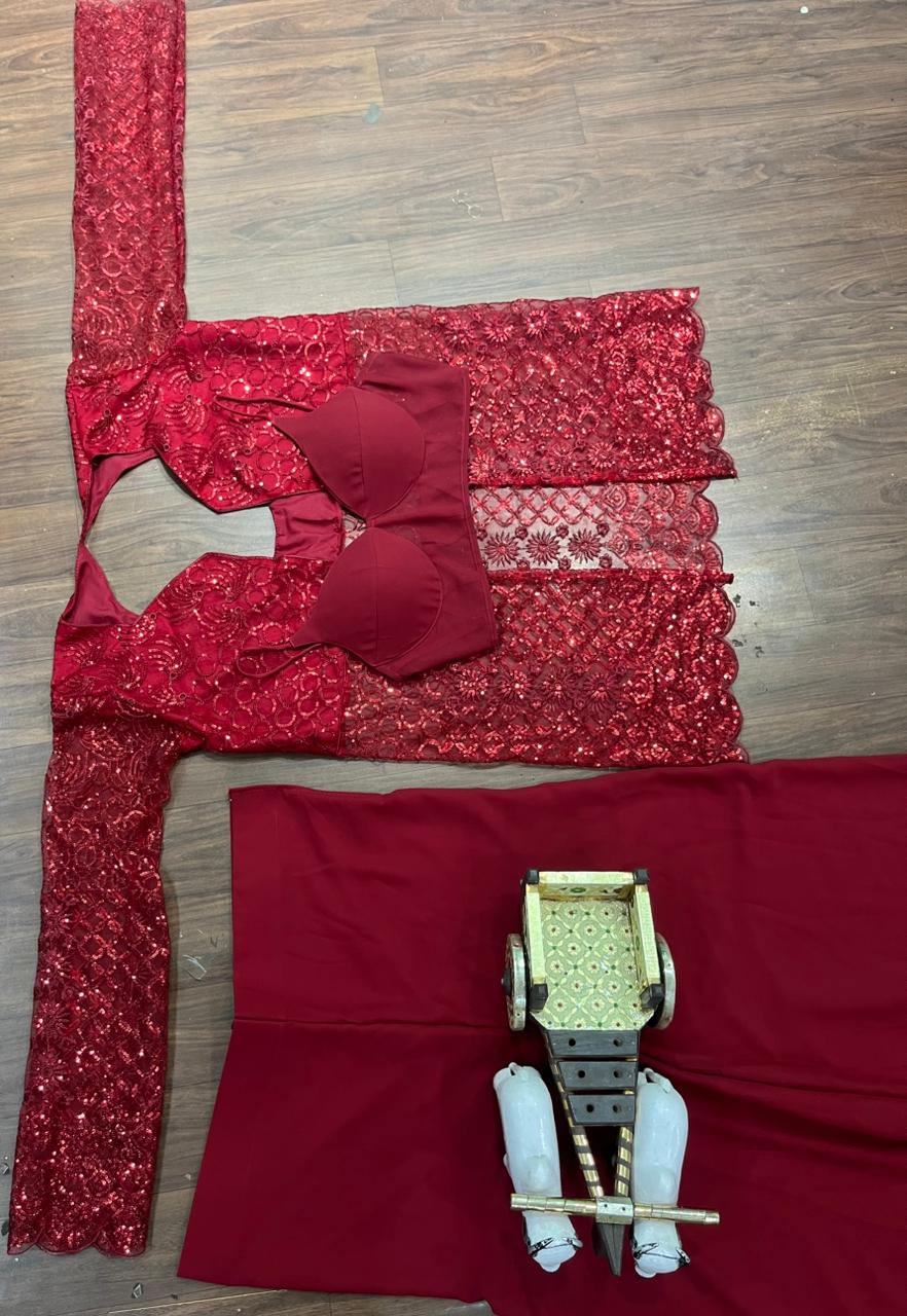 Upgrade your festive and party wardrobe with this stunning 3-Piece Faux Georgette Dress Set, designed to offer the perfect blend of glamour, comfort, and premium craftsmanship. The outfit features a beautifully crafted Butterfly Net Top with rich Embroidery and Sequins Work, paired with a stylish Faux Georgette Palazzo, making it a must-have for every fashion lover.