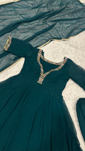 Embroidered Georgette Anarkali Gown with Crepe Silk Pant