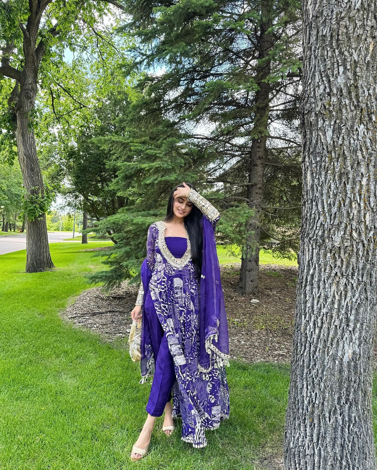 FabricTop : Chinnon Silk With Digital Print with embrodairy work
