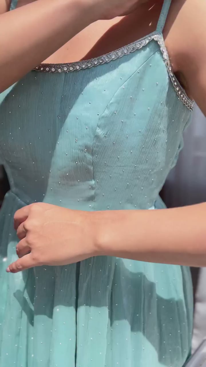 Designer Crunch Silk Top Pant Dupatta Set with Hotfix Work | 3.5 Meter Flair | Party Wear Suit