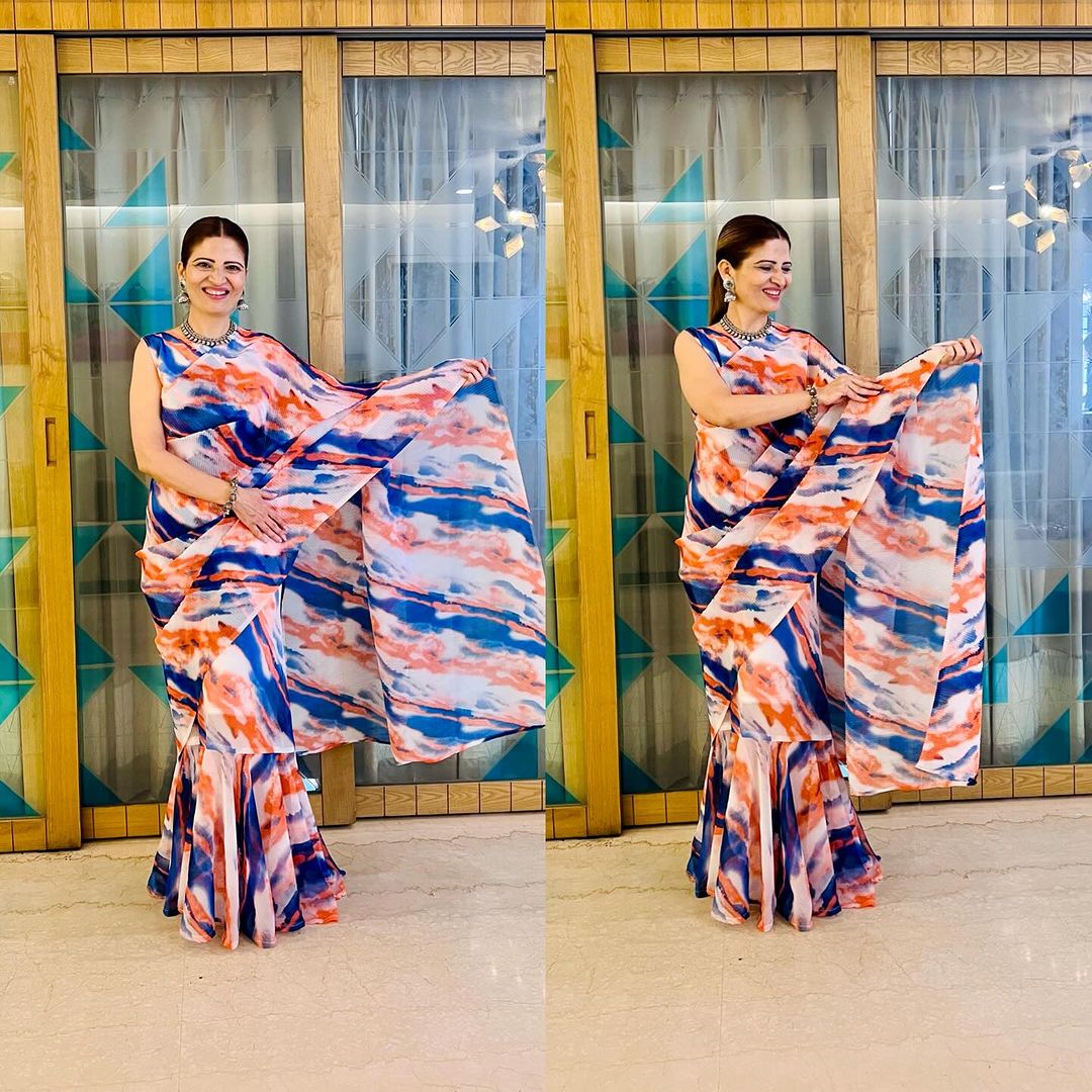*🎃One More Super Hit Floral Georgette Gown Saree Design Launch*