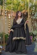Give your ethnic wardrobe a stylish upgrade with our premium 3 Piece Plazzo Pair designed with Real Mirror Work and Fine Embroidery on smooth Cosmos Fabric. This stunning outfit is perfect for weddings, festive celebrations, parties and special occasions. With soft Micro inner, comfortable fit and premium finishing, this set brings elegance and modern glamour together.