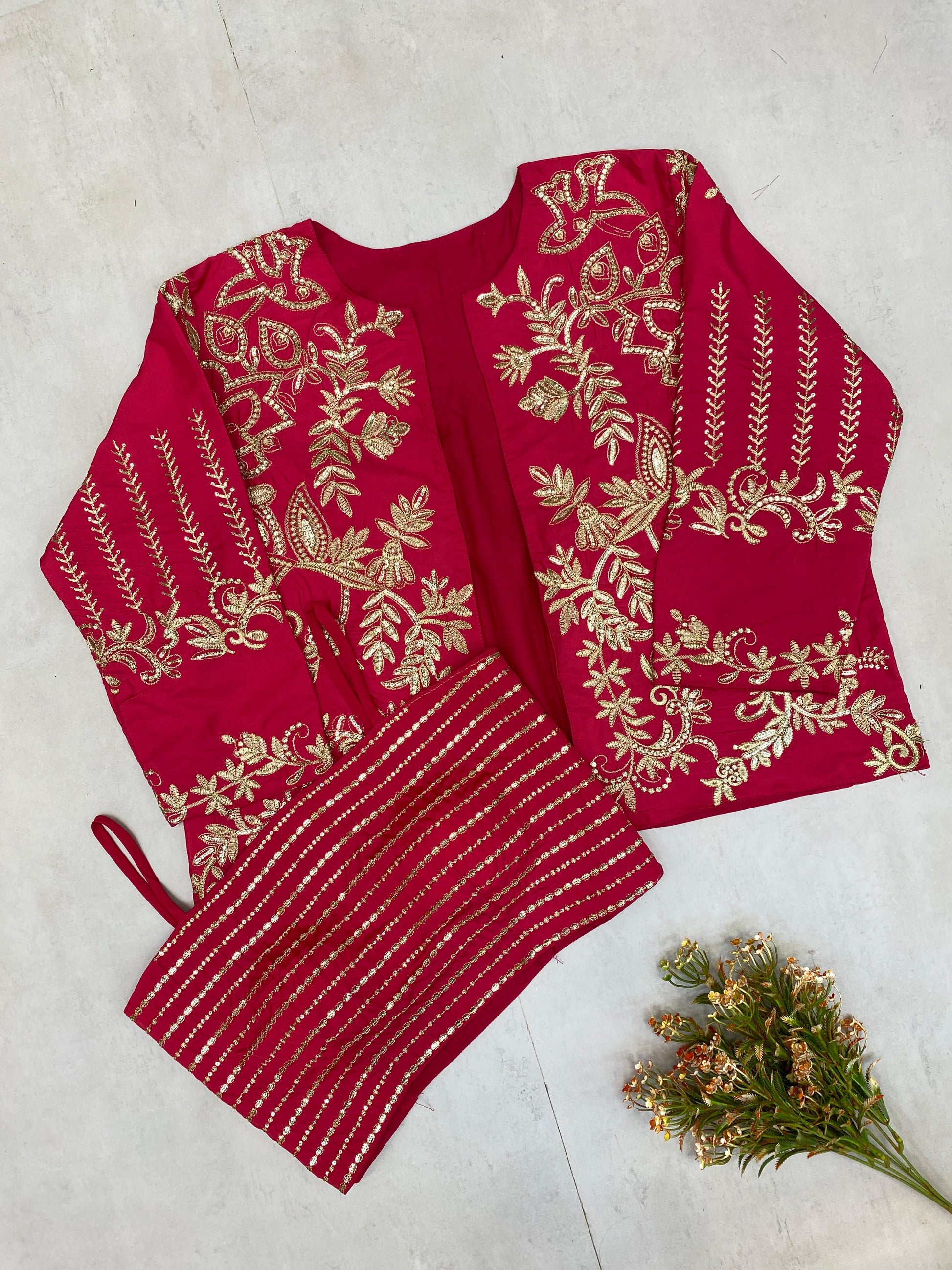 SHRUG : FRENCH CRAPE WITH SEQUENCE EMBROIDERY