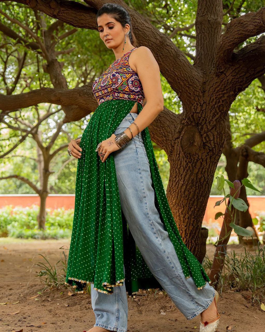Stylish Cinon Digital Print Top with Mirror Accents and Inner Lining