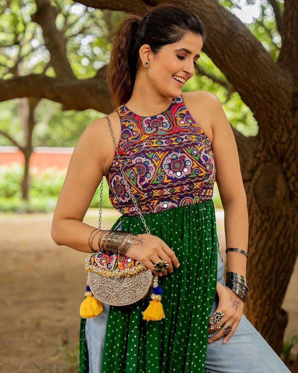 "Radiate Elegance: Digital Print Cinon Top with Mirror Accents and Inner Cup Support"