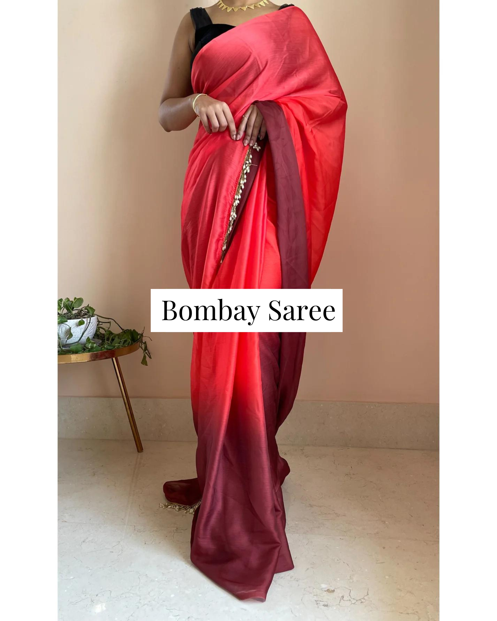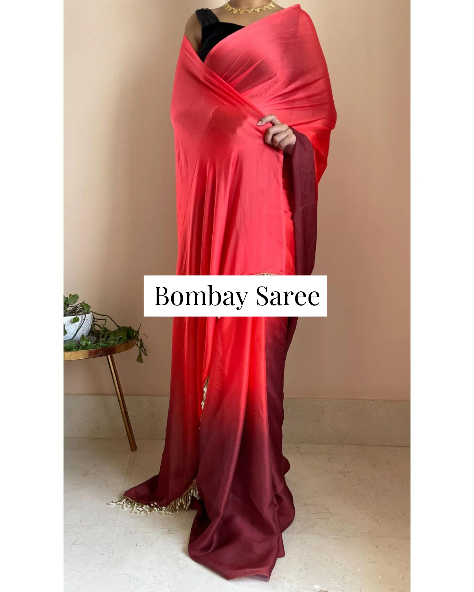 Vermillion Ombre Satin Saree with Handmade Tassels on Pallu